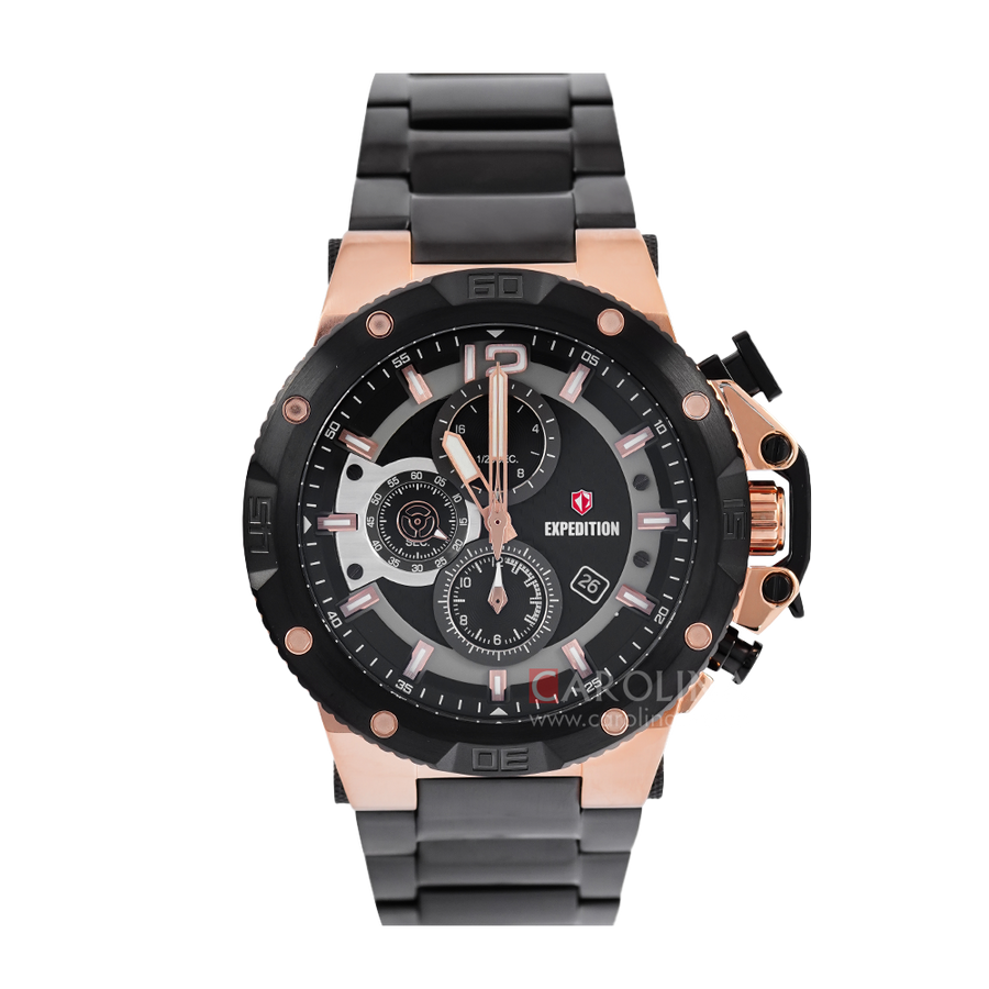Jam Tangan Expedition E 6751 MCBBRBA Men Black Dial Black Stainless Steel Strap