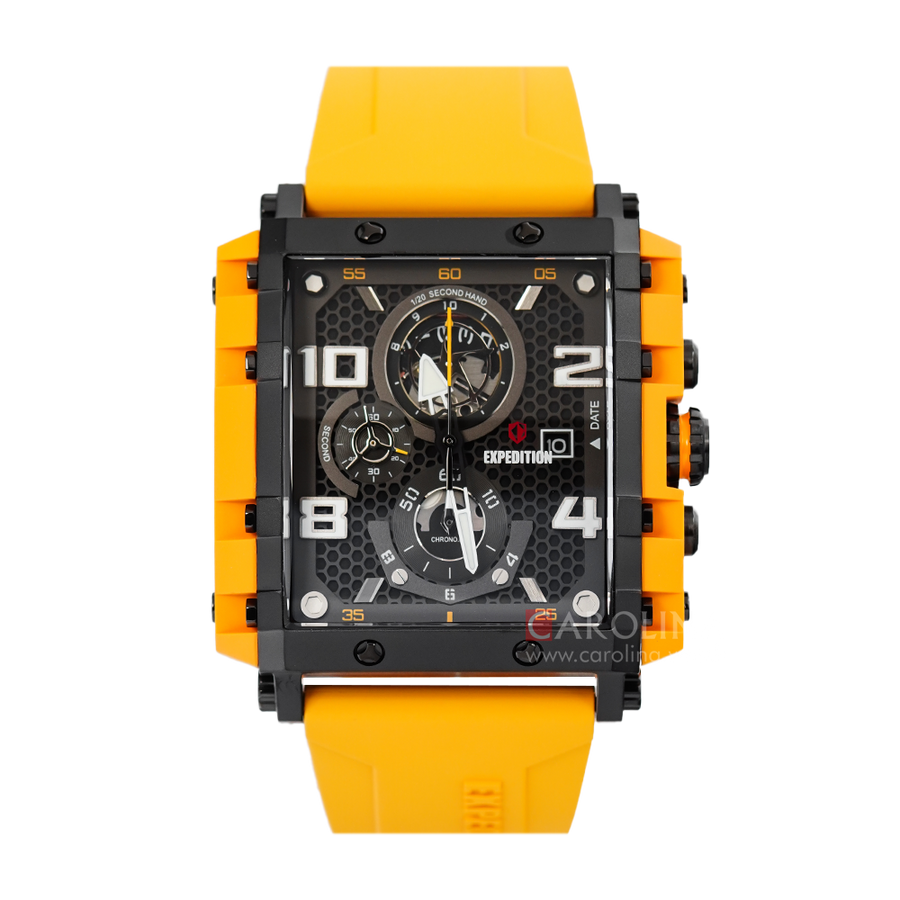 Jam Tangan Expedition E 6757 MCRIPBAYL Chronograph Men Black Dial Black Rubber Strap