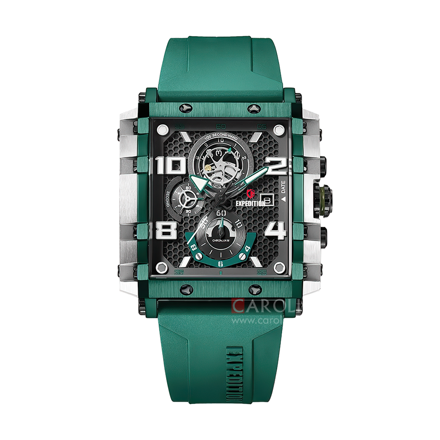 1x Jam Tangan Expedition Chronograph E 6757 MCRTZBA Men Black Dial Black Dial Green Rubber Strap,