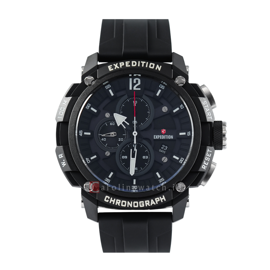Jam Tangan Expedition E 6781 PMCRTBBAGR Men Black Dial Black Rubber Strap