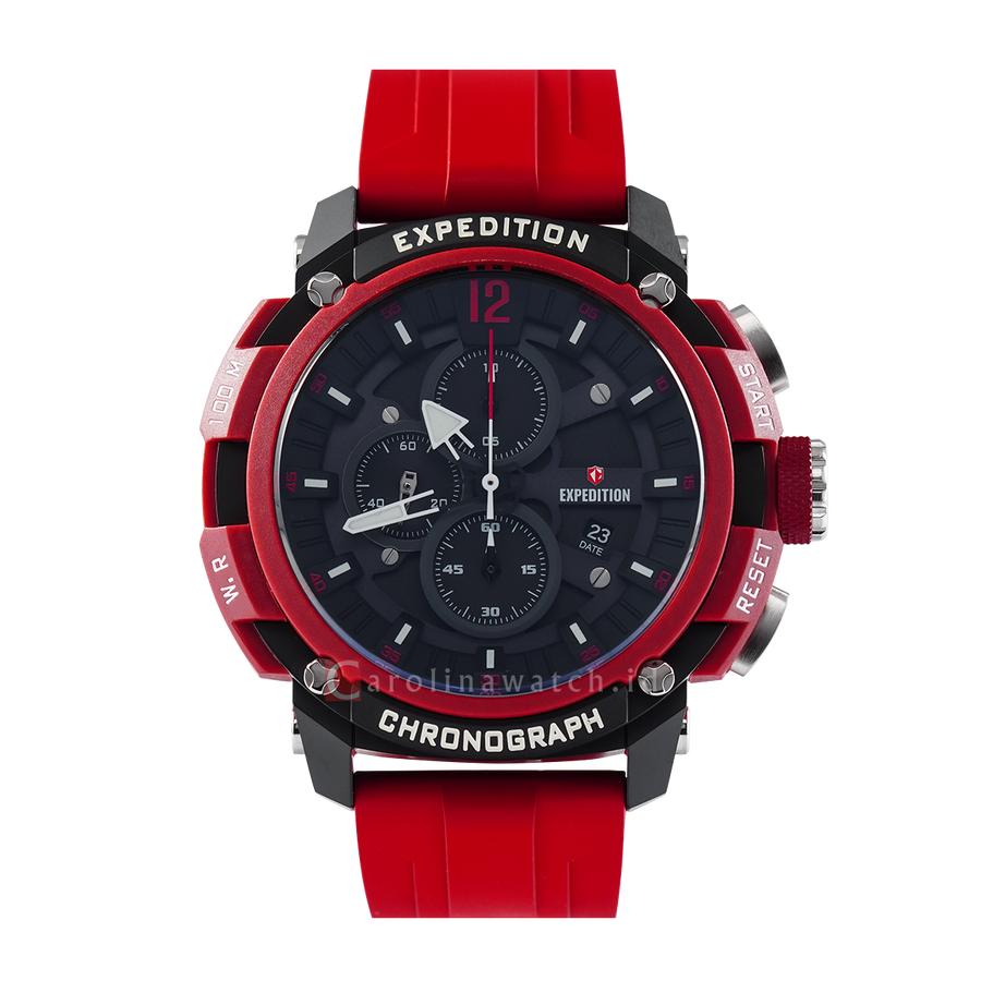 Jam Tangan Expedition E 6781 PMCRTBBARE Men Black Dial Red Rubber Strap