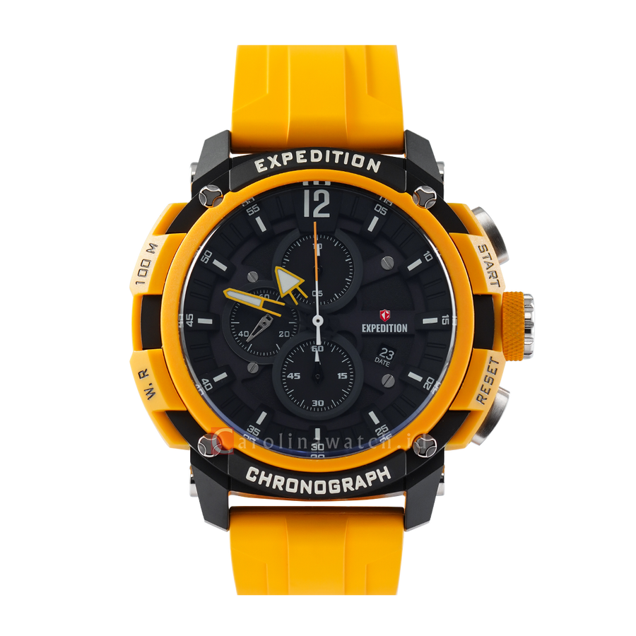 Jam Tangan Expedition E 6781 PMCRTBBAYL Men Black Dial Yellow Rubber Strap