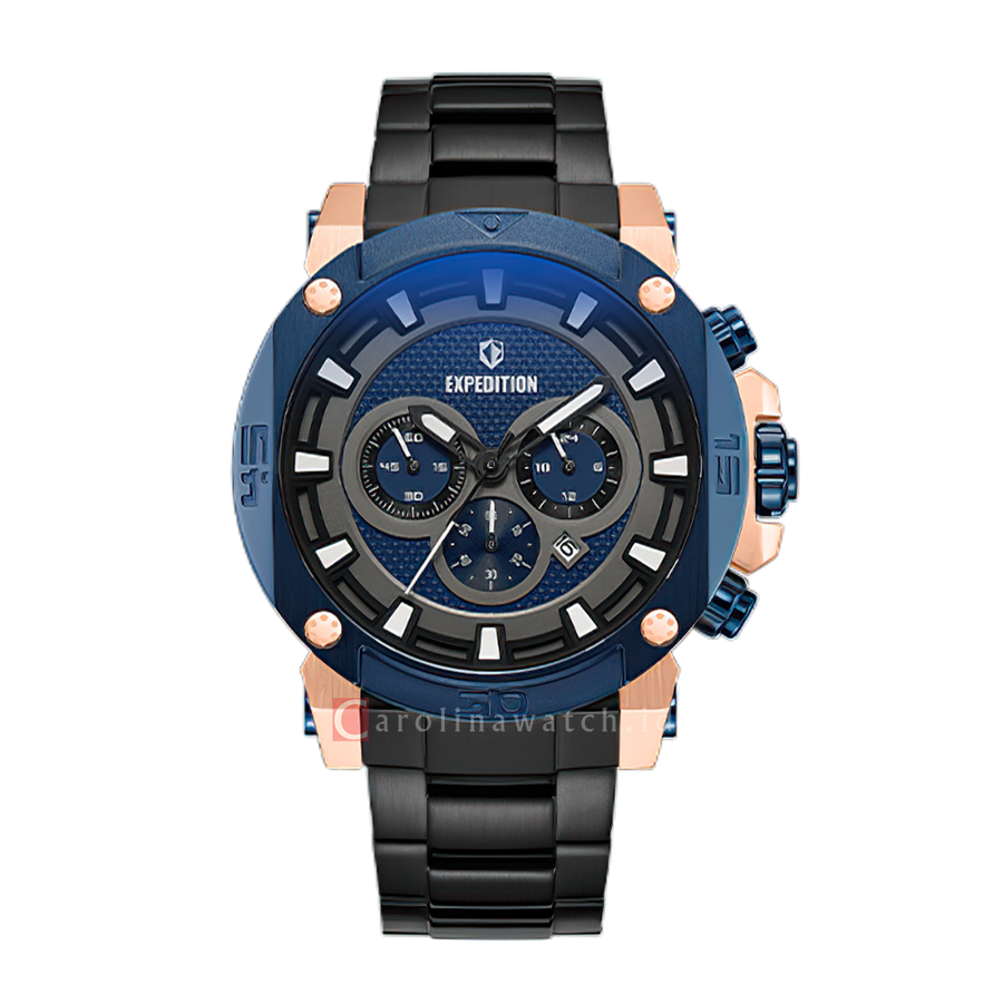 1x Jam Tangan S Expedition Chronograph E 6606 MCBURBABU Men Blue Dial Black Stainless Steel Strap