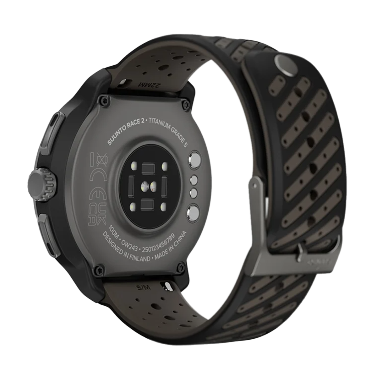 SUUNTO SS051202000 Unisex - Suunto Race 2 Dark Brushed Titanium Striped Two-Tone Black Silicone Strap