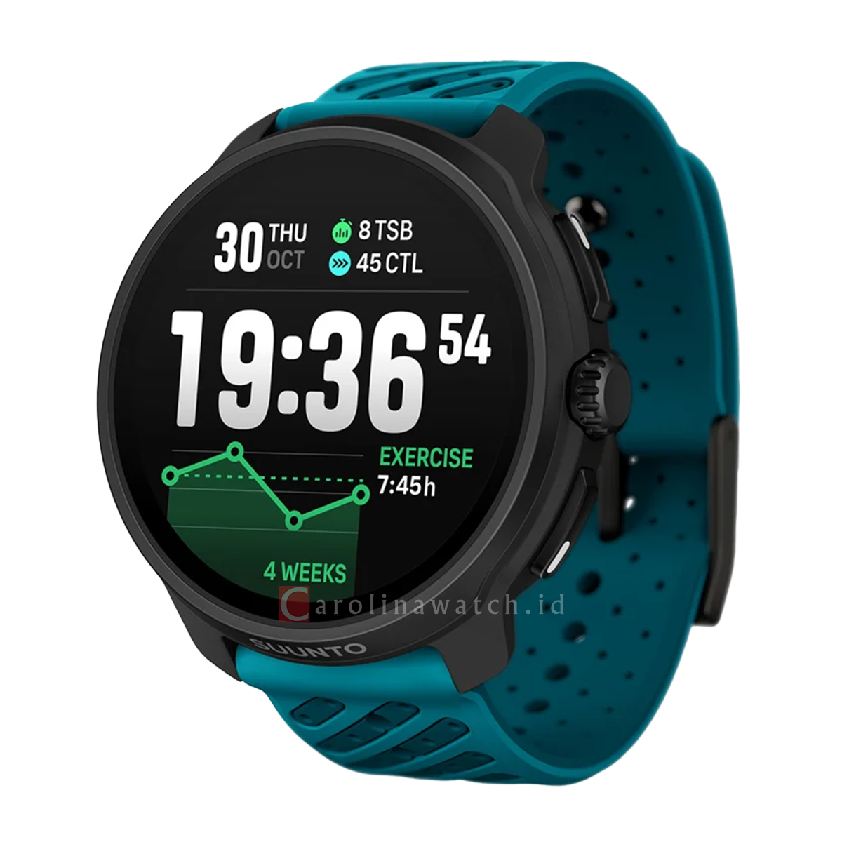 1x Jam Tangan SUUNTO SS051242000 Unisex - Suunto Race 2 Dark Brushed Titanium Striped Two-Tone Wave Blue Silicone Strap