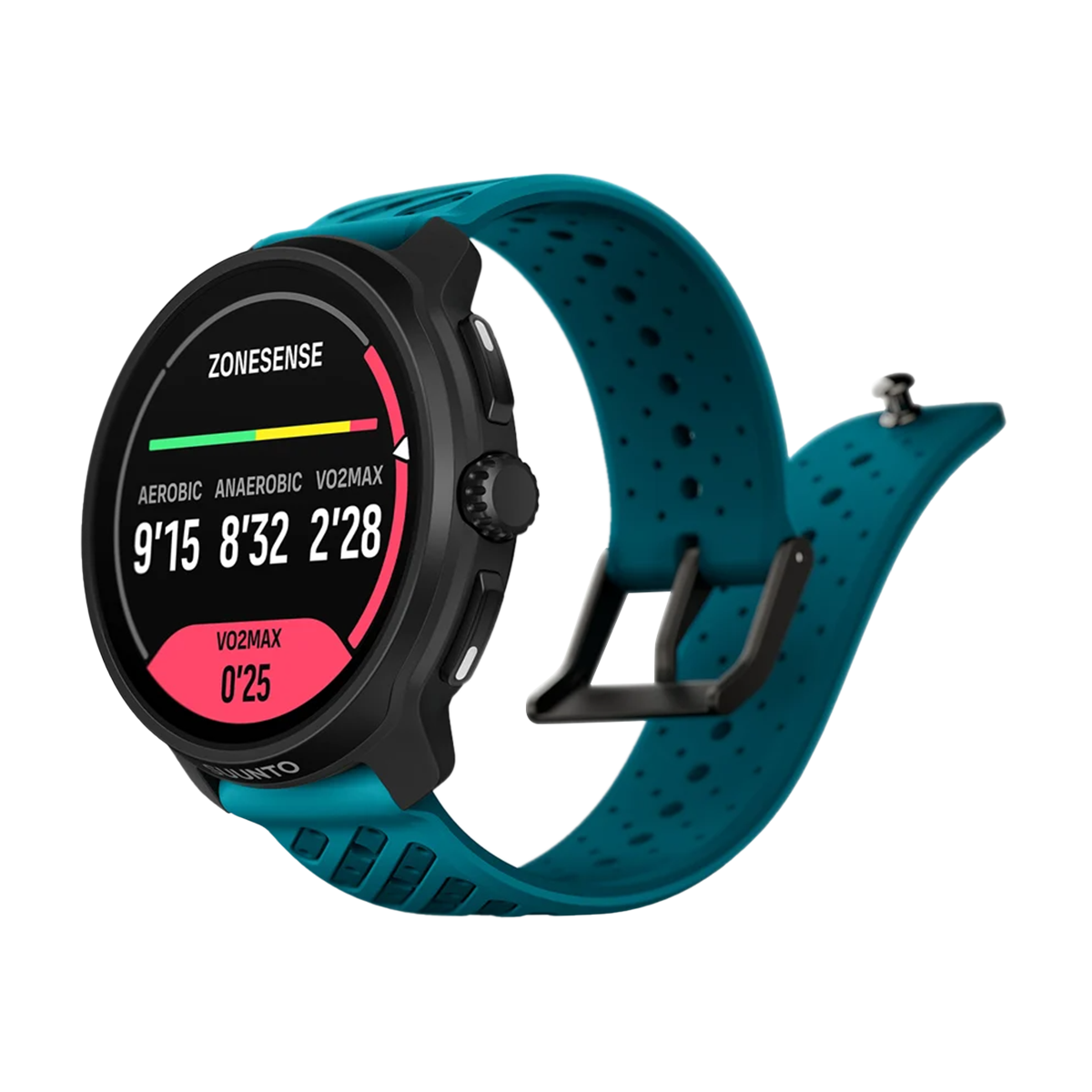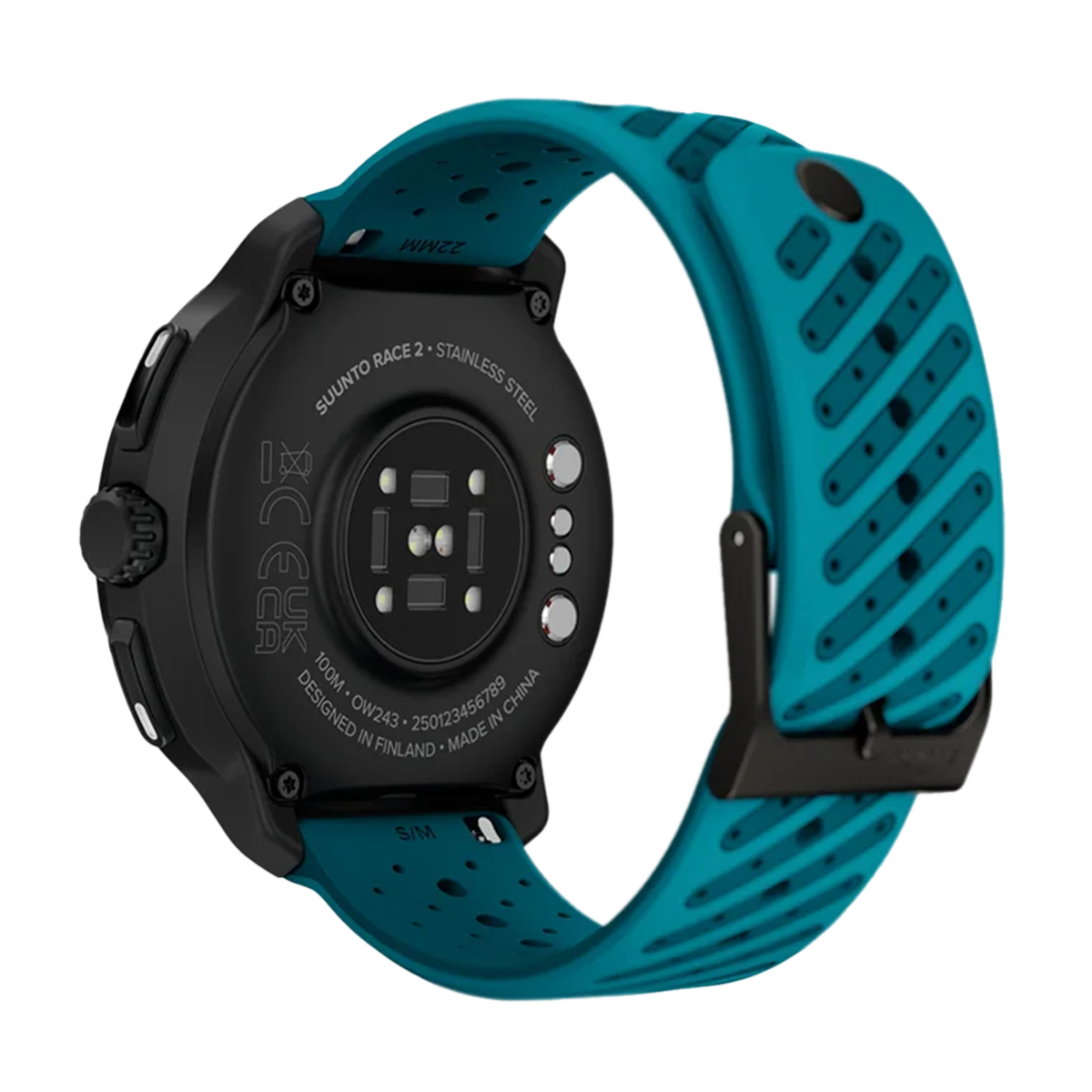 SUUNTO SS051242000 Unisex - Suunto Race 2 Dark Brushed Titanium Striped Two-Tone Wave Blue Silicone Strap