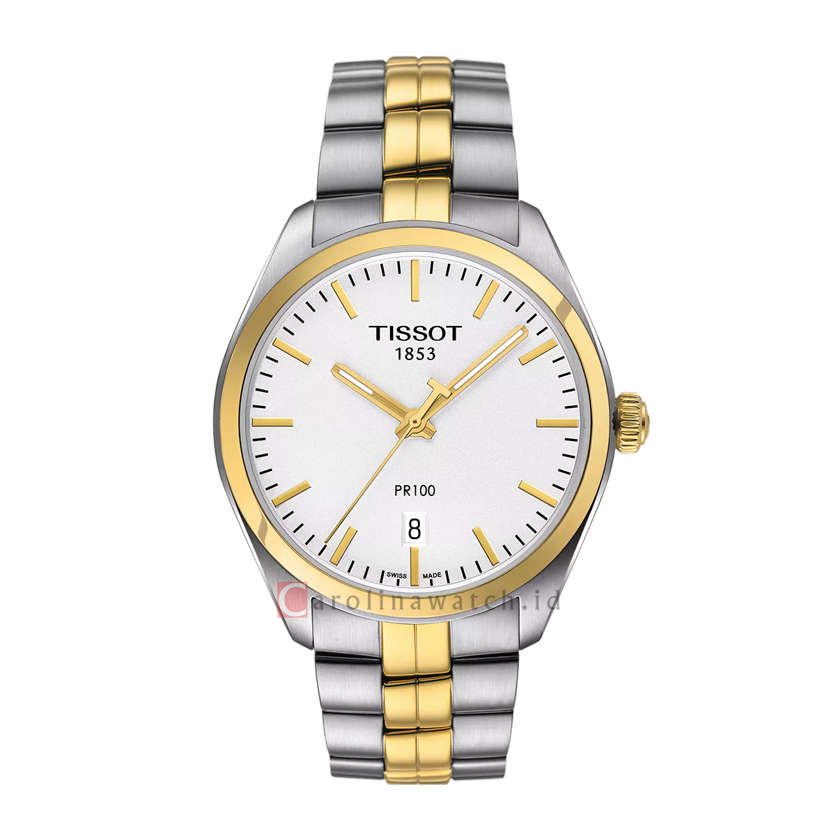 1x Jam Tangan TISSOT T-Classic PR100 T1014102203100 Men Silver Dial Dual Tone Stainless Steel Strap