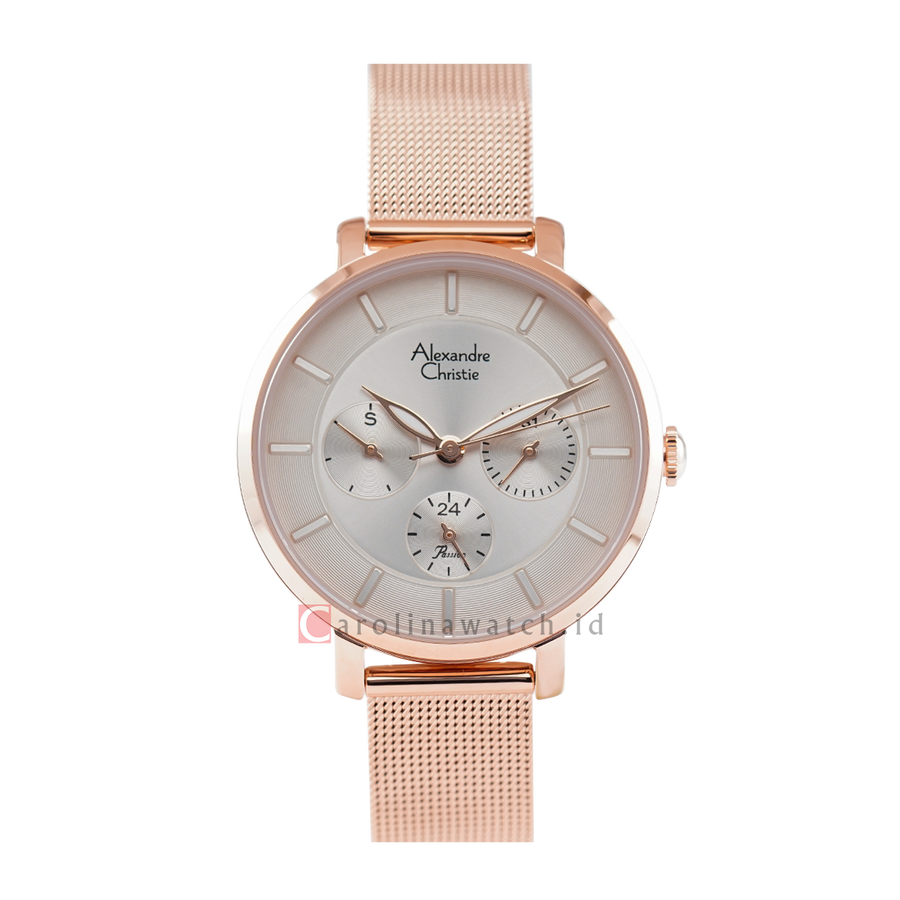 Jam Tangan Alexandre Christie AC 2A55 BFBRGGR Unisex Silver Dial Rose Gold Stainless Steel Strap