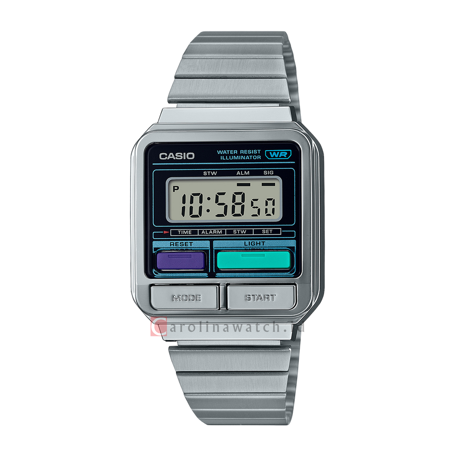 1x Jam Tangan Casio General A120WE-1A Unisex Digital Dial Grey Stainless Steel Band
