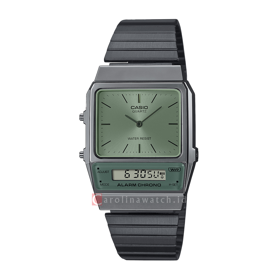 Jam Tangan Casio General AQ-800ECGG-3A Unisex Olive Green Dial Black Stainless Steel Band