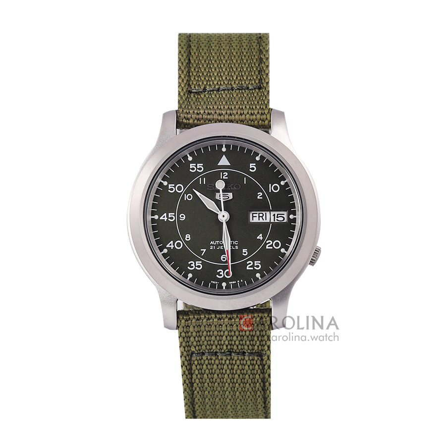 1x Jam Tangan Seiko 5 SNK805K2 Automatic 21 Jewels Unisex Black Dial Green Nylon Strap,