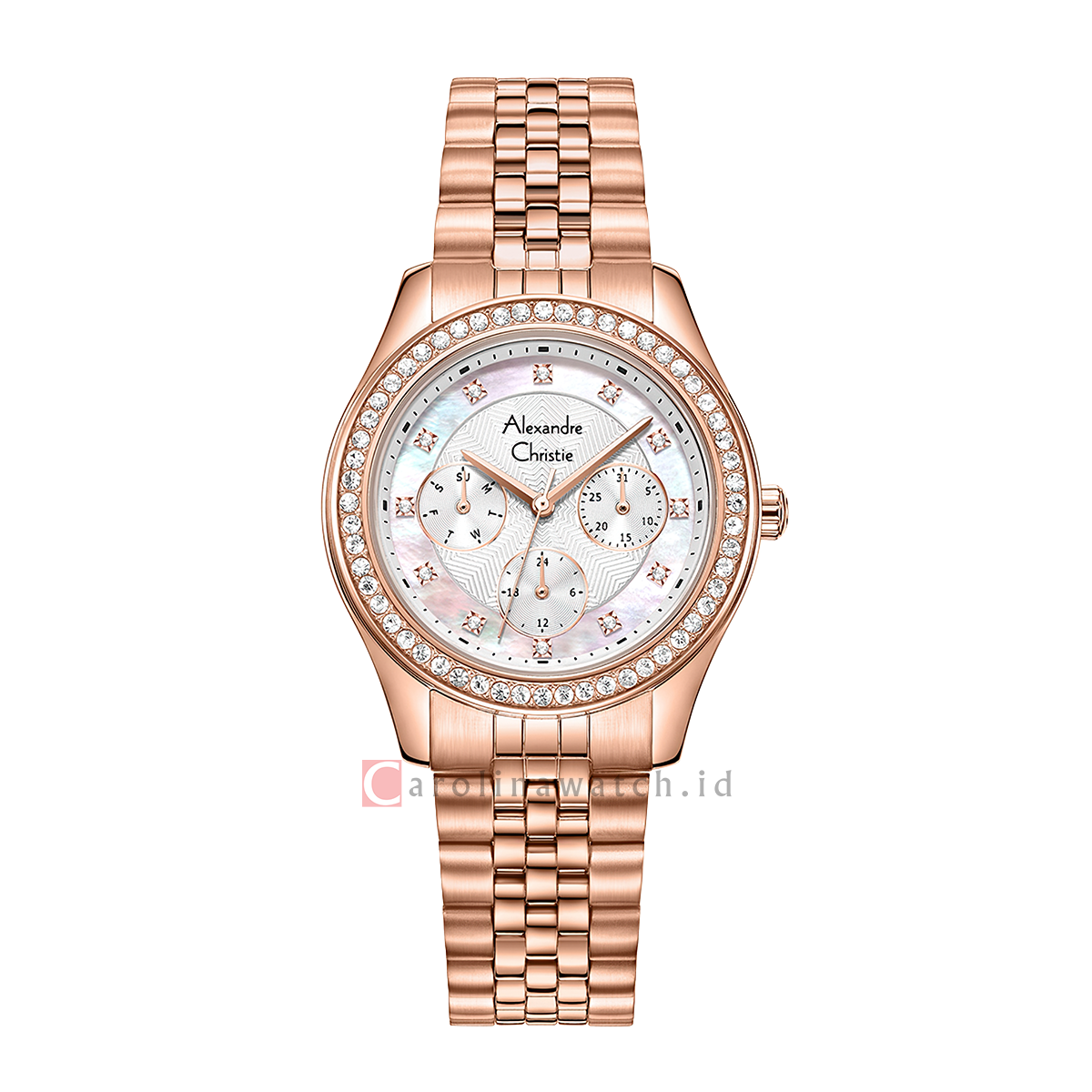 1x Jam Tangan Alexandre Christie AC 2496 BFBRGSL1 Women Silver White Dial Rose Gold Stainless Steel Strap