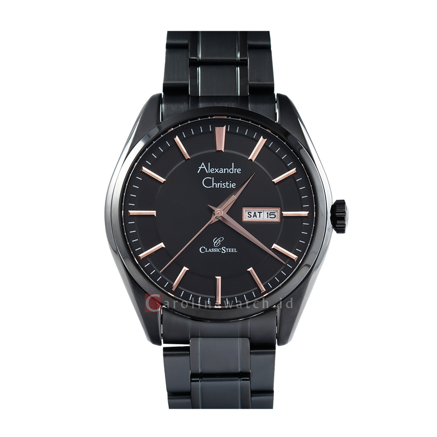 Jam Tangan Alexandre Christie Classic Steel AC 8672 MEBIPBARG Men Black Dial Black Stainless Steel Strap