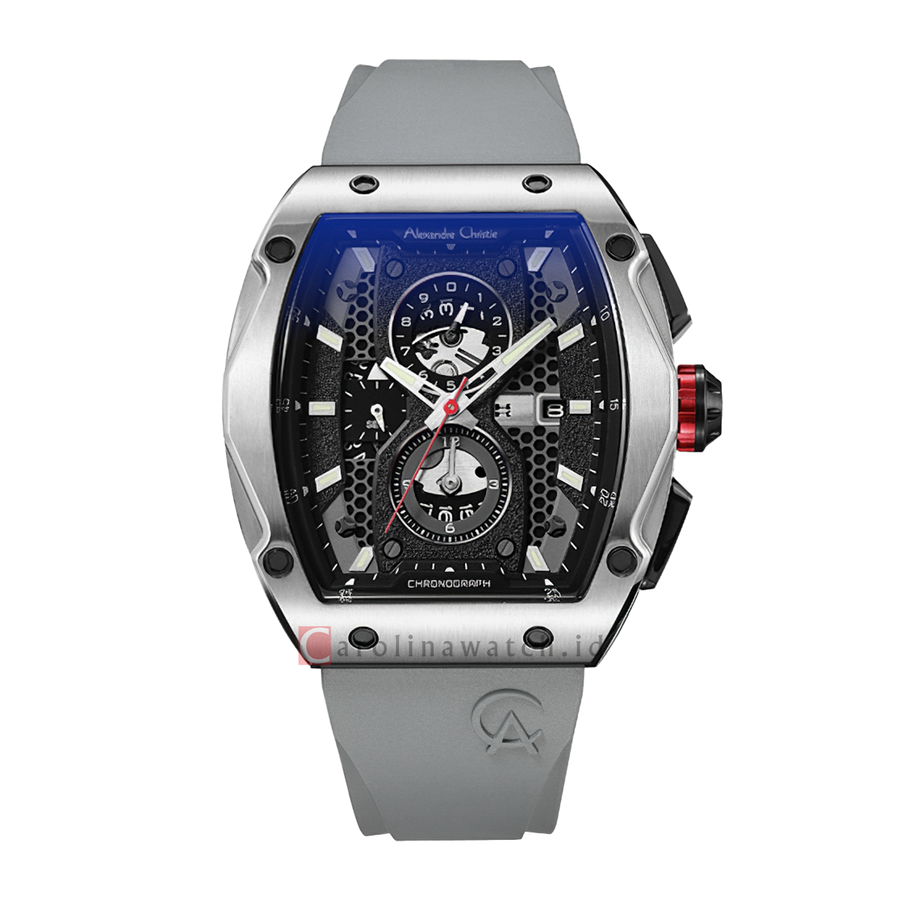 Jam Tangan Alexandre Christie AC 6608 MCRTBBAGR Chronograph Men Black Dial Grey Rubber Strap