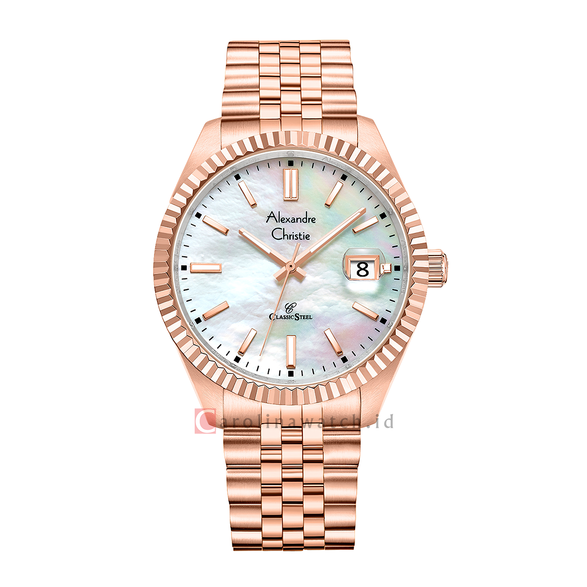 1x Jam Tangan Alexandre Christie Classic Steel AC 5002 MDBRGMS Men MOP Dial Rose Gold Stainless Steel Strap,