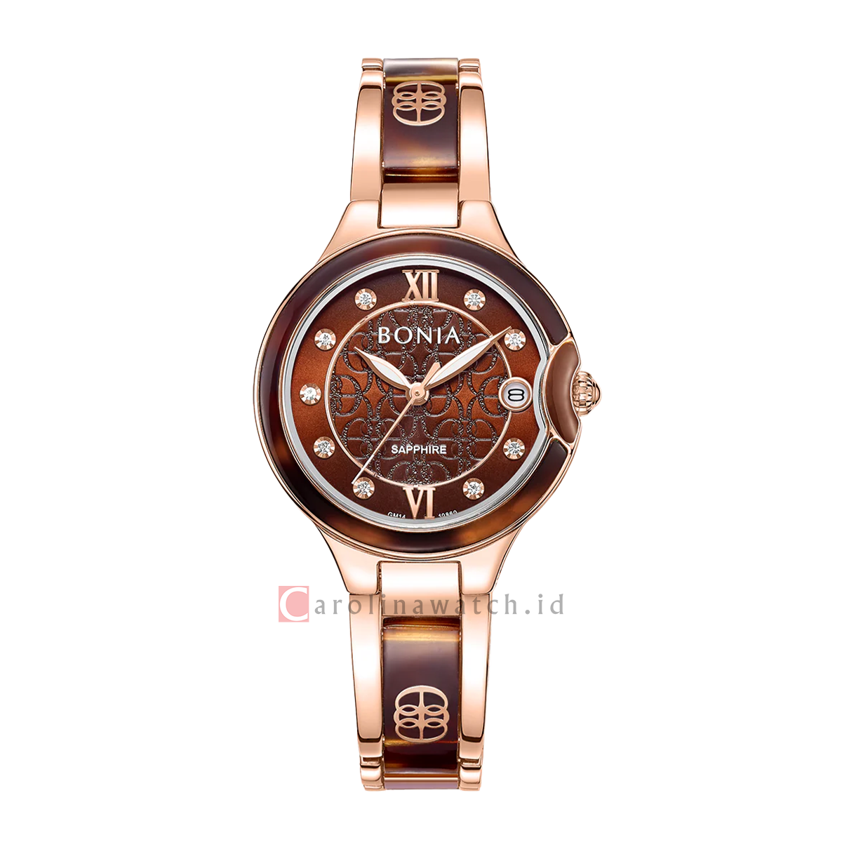 1x Jam Tangan BONIA Elegance B10860-2545 Women Brown Dial Dual Tone Stainless Steel Strap