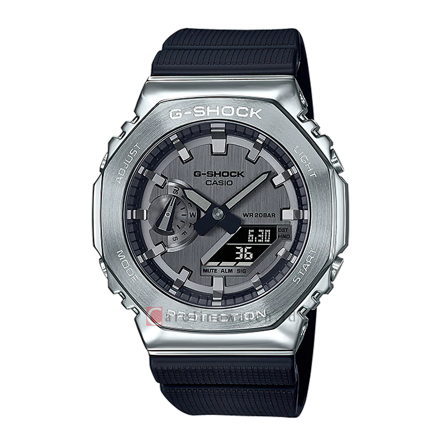 Jam Tangan Casio G-Shock GM-2100-1A Men CasiOak Metal Covered Grey Analog Digital Dial Black Resin Band