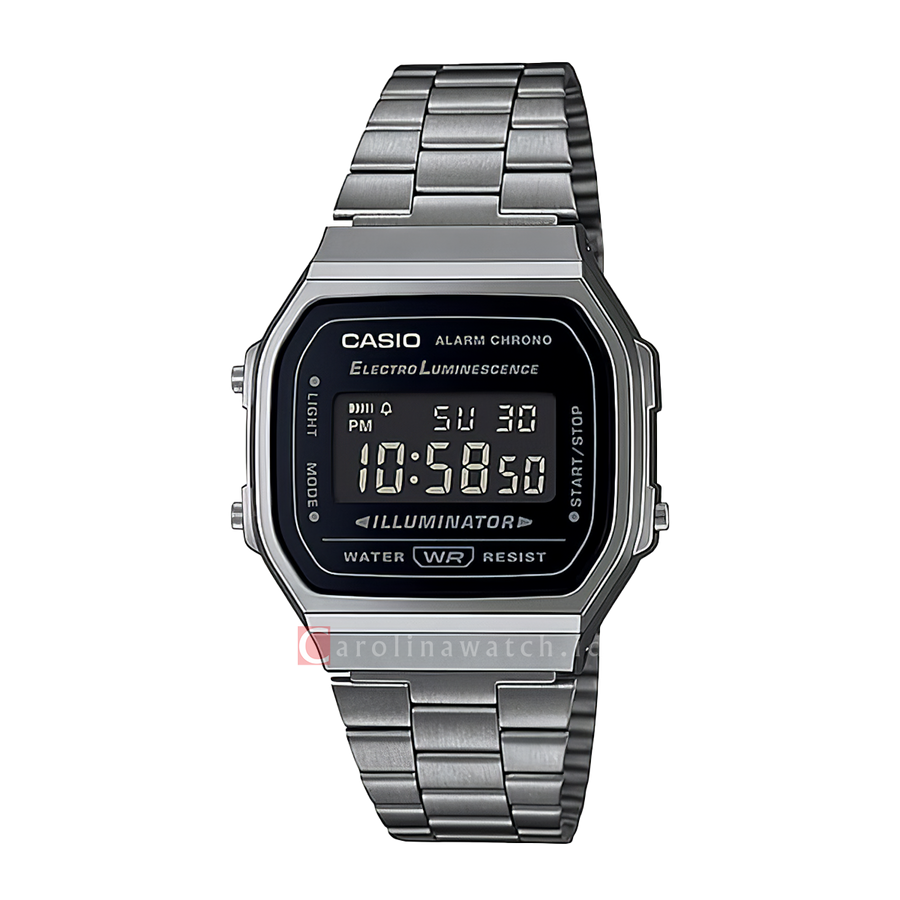 Jam Tangan Casio General A168WGG-1B Unisex Digital Dial Black Stainless Steel Band