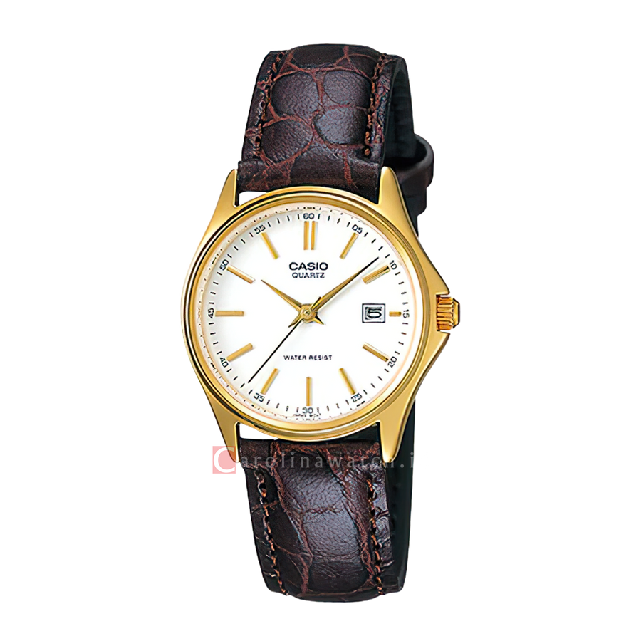 Jam Tangan Casio General LTP-1183Q-7A Women White Dial Dark Brown Leather Band