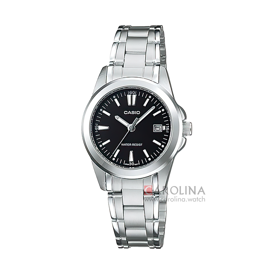 Jam Tangan Casio General LTP-1215A-1A2 Enticer Women Black Dial Stainless Steel Band