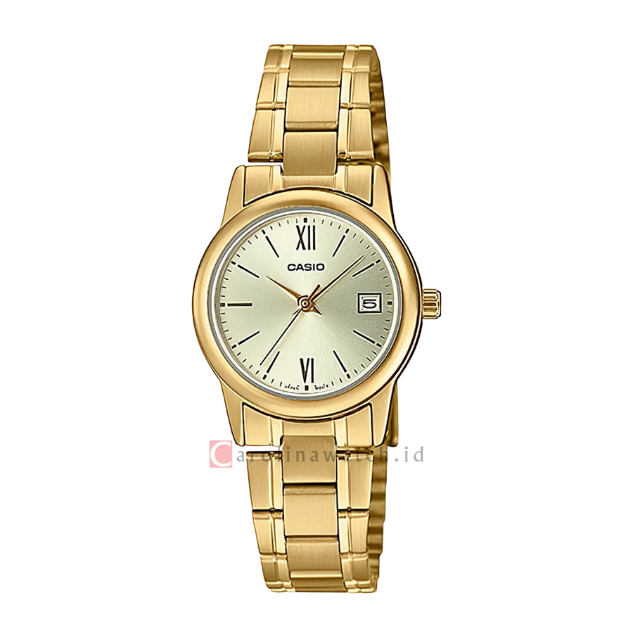 Jam Tangan Casio General LTP-V002G-9B3 Women Gold Dial Gold Stainless Steel Band