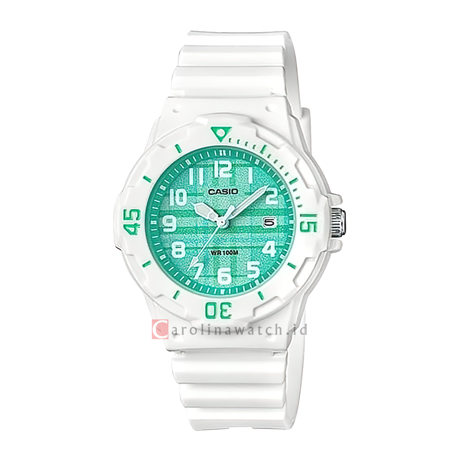 Jam Tangan Casio POP LRW-200H-3C Women White Green Patterned Dial White Resin Band