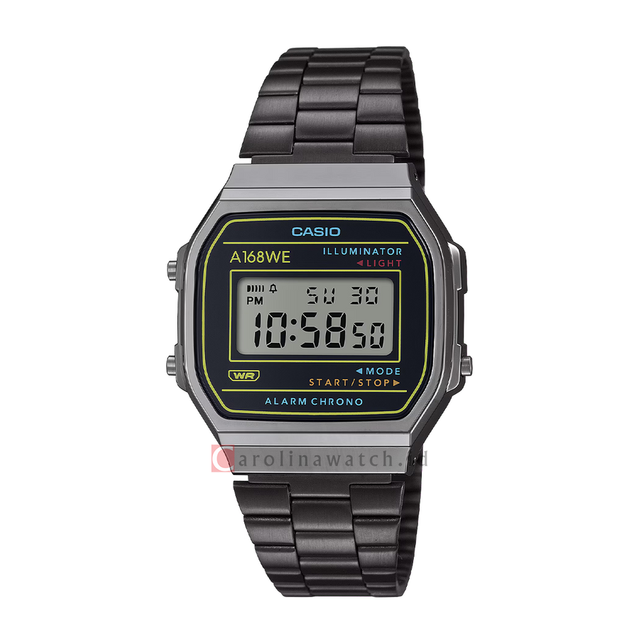 Jam Tangan Casio Vintage A168WEHB-1A Unisex Digital Dial Black Stainless Steel Band