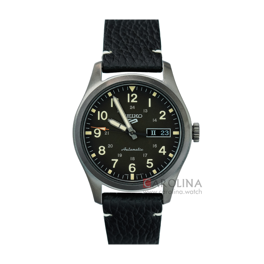 Seiko 5 Sports SRPG41K1 Field Specialist Style Men Black Dial Black Leather Strap