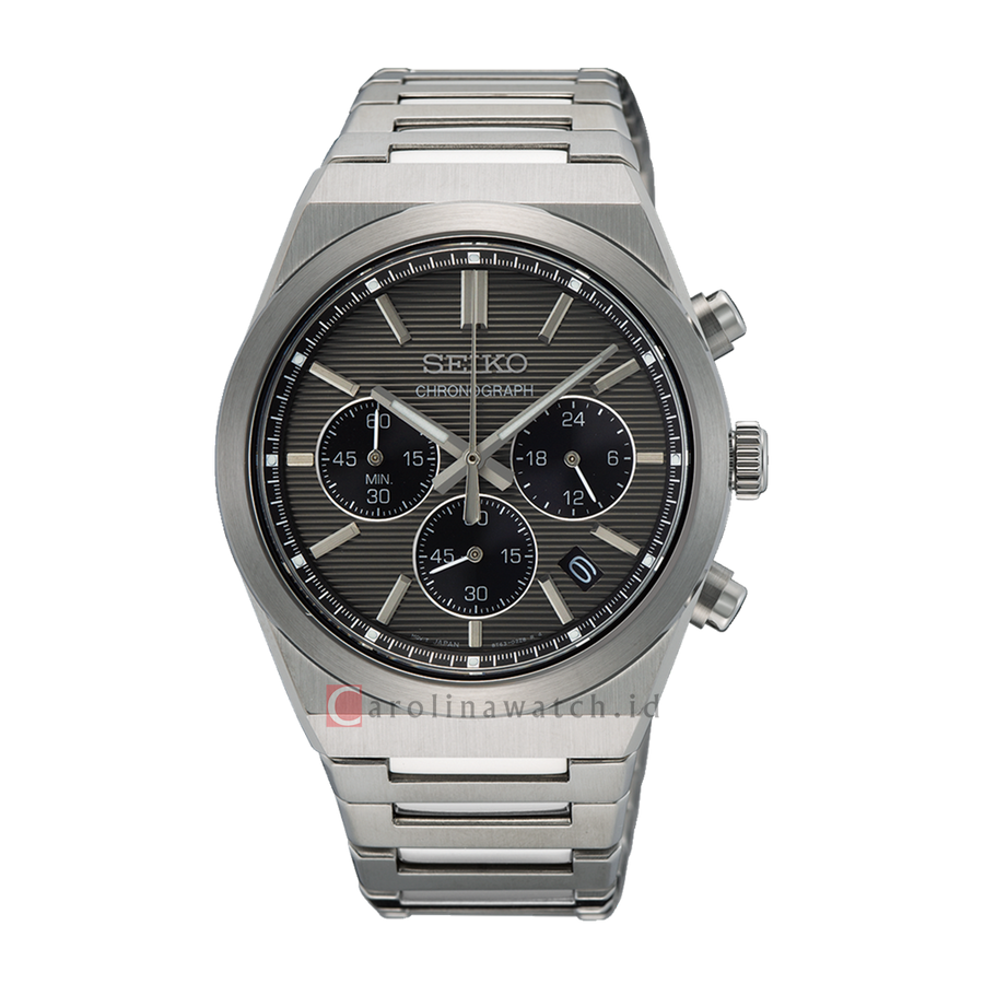 Seiko Chronograph SSB455P1 Men Black Dial Stainless Steel Strap
